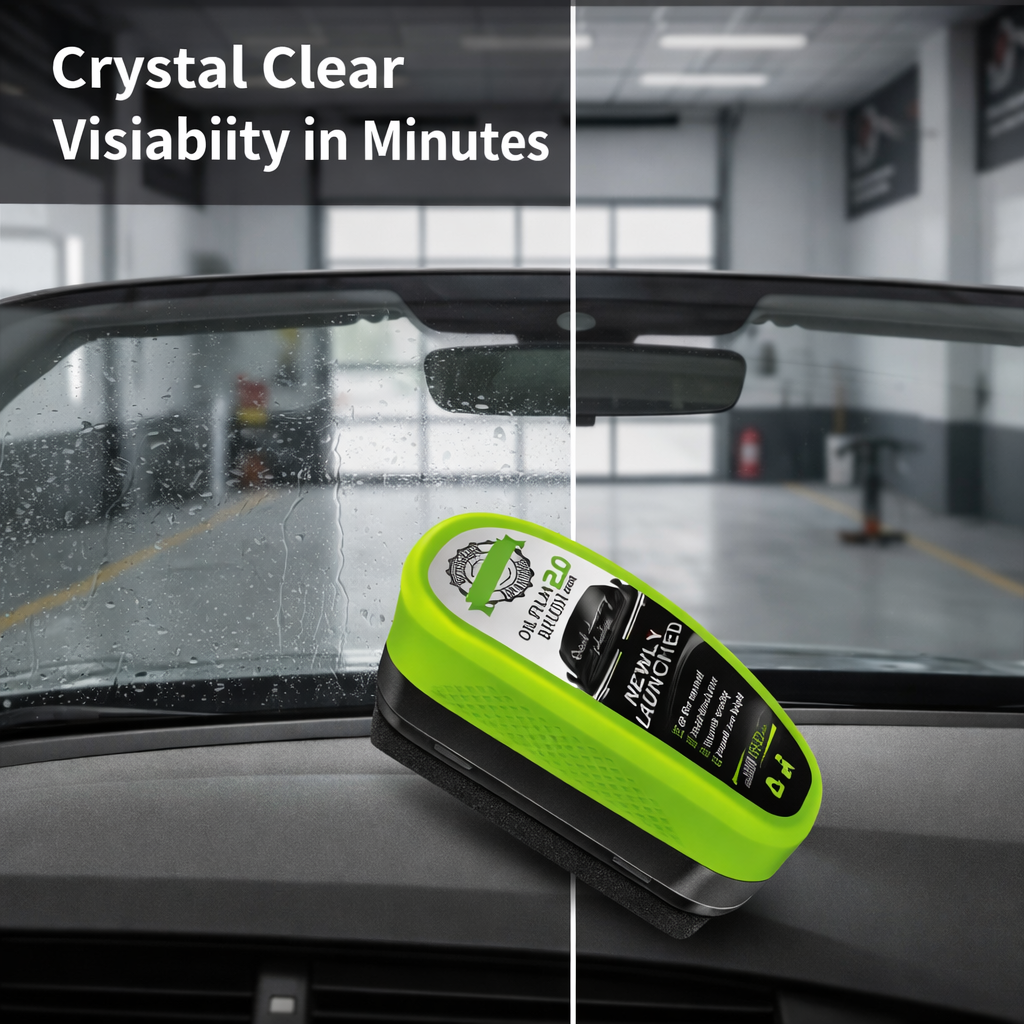 The Oil Film Remover technology targets invisible oily residue with precision, restoring full glass transparency in minutes. The result is instant clarity, reduced glare and greater comfort when driving in rain or at night.